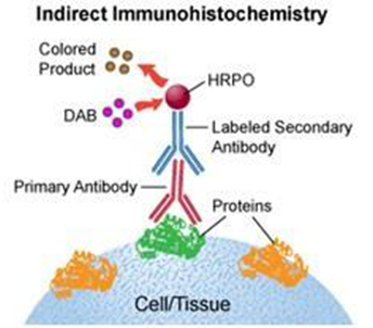 IHC染色是通過抗體識別靶蛋白實(shí)現(xiàn)的。抗原抗體復(fù)合物能夠通過酶促反應(yīng)或者熒光來實(shí)現(xiàn)可視化。這些底物可以直接偶聯(lián)到一抗或二抗上。