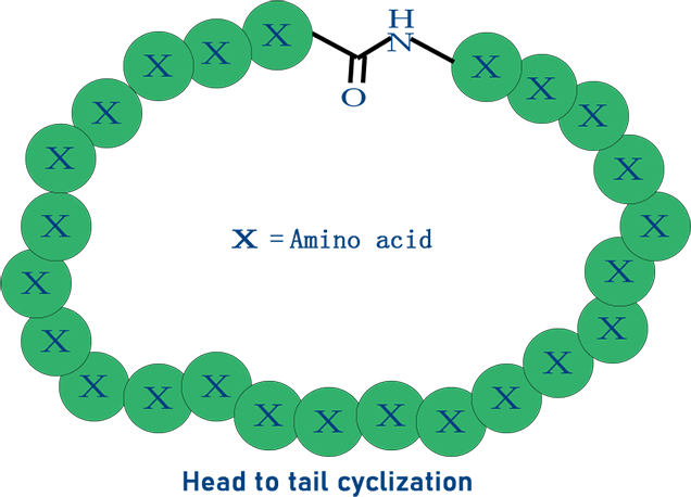 肽谷生物通過對多肽N端氨基酸a-氨基差異化保護與脫除,然后將此a-氨基與多肽C端羧基縮合,可以實現高質量首尾環肽。