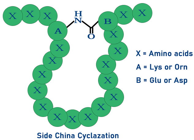 肽谷生物通過對Lys或者Orn側鏈氨基以及Glu或者Asp側鏈羧基選擇性保護及脫除可以實現多肽準確位點成環。