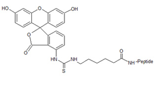 肽谷生物能提供很多常用的熒光染料,比如:異硫氰酸熒光素(FITC)、羧基熒光素(FAM)、羧基四甲基羅丹明(Rhodamine) 、NBD (7-nitrobenz-2-oxa-1, 3-diazole)、Amc、Atto、Alexa Fluor、Bodipy、Cy3、Cy5等。