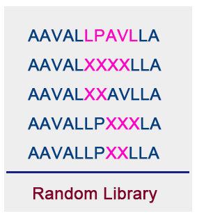 隨機多肽文庫的設計是以20種天然氨基酸通過鳥槍式法(shotgun approach)同時地、隨機地取代被選擇的氨基酸殘基。