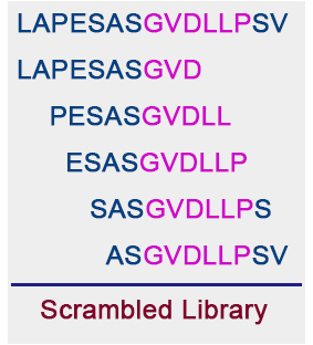 Scrambled Library的設計是基于對原有多肽氨基酸序列進行內部置換來實現的。它是突變程度最高的多肽文庫,被打亂的多肽通常被用于作為陰性對照證實某一特定序列是蛋白功能或活性的關健。它也是一個用來發現新目標的隨機篩選工具。